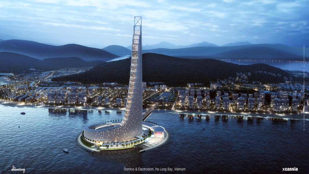 Жан-Поль Кассия, основатель и директор по дизайну компании xCassia, сказал, что его идея построить башню на искусственном острове была мечтой последних десяти лет. Первый набросок здания он сделал еще в 2009 году в Париже после того, как вместе с уже покойным отцом и двумя сыновьями сыграл партию в домино. Отсюда и название башни, а также ее дизайн, напоминающий сложенные друг на друга кости домино.