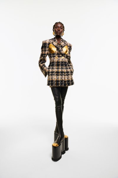 Модный дом Saint Laurent представил новое прочтение твидового костюма, обновив его за счет мини-юбок. Креативный директор дома Энтони Ваккарелло привнес в твид линии 60-ых и оттенки 80-ых, сделав их смелыми с точки зрения цветовых решений – от синего "электрик" до красного".
