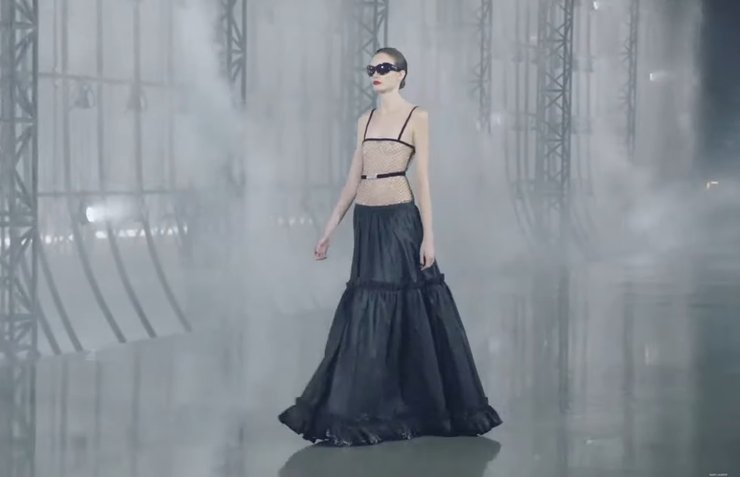 Широкие плечи и глубокие декольте: главные тренды 2022 с показа Saint Laurent на Неделе моды