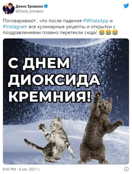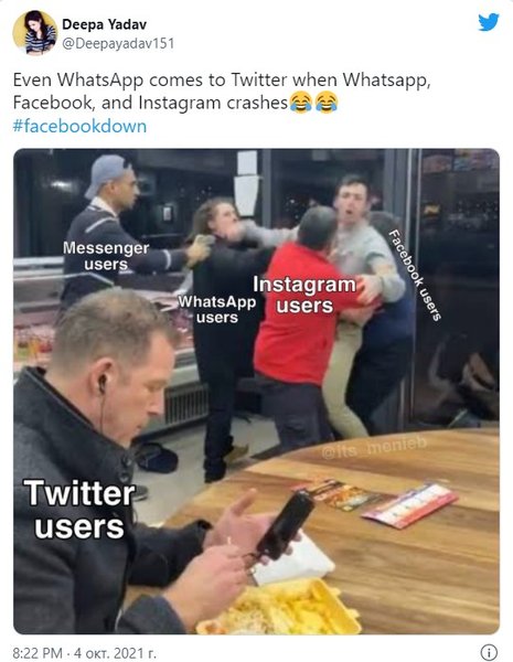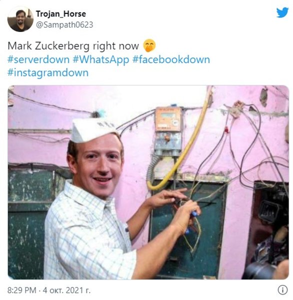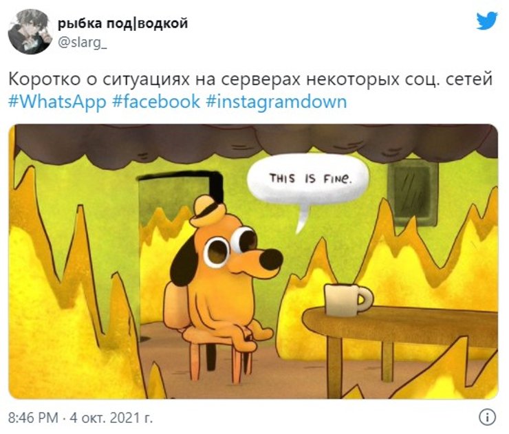 Сбой в Facebook, Instagram и WhatsApp, а также сложности с доступом к некоторым другим ресурсам устранены, однако на память о случившемся остались многочисленные мемы и шутки.