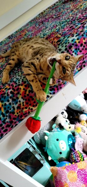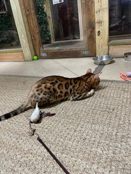 Среди бенгалов практически нет агрессивных, потому что этот момент учитывался еще на этапе формирования породы. Они хорошо поддаются дрессировке и любят воду. Поэтому тазик с игрушками в котором кошка будет плескаться и вылавливать лапой вещи станет отличным способом удовлетворить ее охотничьи инстинкты.