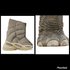 Необычная обувь, как уже говорилось, представляет собой дутые сапоги с необычной подошвой. У них широкое голенище с набитой прослойкой, которое закрывается с помощью застежки Velcro или заклепки. Нижняя часть обуви состоит из высокой мидсоли (средняя часть подошвы) с фигурными отверстиями, делая подошву похожей на экзоскелет.