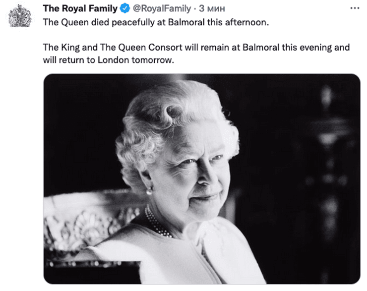Информацию о смерти подтвердила пресс-служба Букингемского дворца. Также там добавили, что король и королева-консорт останутся в Балморале до завтра.