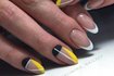 Нейтральный маникюр с тонкими прямыми, ломанными или волнистыми линиями черного, белого или яркого цвета придаст маникюру совершенно новое прочтение. Он уместно будет смотреться как в повседневном образе, так и в офисе.