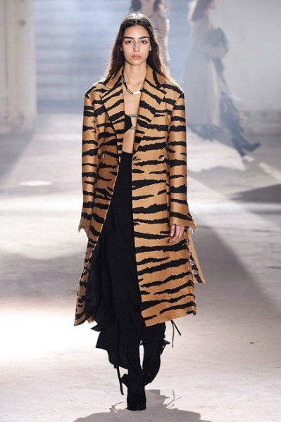 В преддверии года Тигра "хищная" тематика захватила и верхнюю одежду, в том числе пальто. К стандартным расцветкам леопардов, львов и тигров добавились на мировых подиумах новые цвета. Так, например, вместо оттенков коричневого появились насыщенные синий и зеленый.