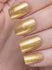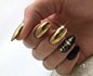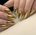 Втирка – это частицы полимерного пигмента, предназначенные для придания ногтям блеска или создания зеркального эффекта. Название произошло от способа нанесения: пигмент втирают в лак или топовое покрытие. Металлическая зеркальная втирка соответствующего оттенка придает ногтям максимально золотой вид, и кажется, что ногти действительно сделаны из этого металла. Очень эффектно такой маникюр смотрится на длинных ногтях. В тренде – как комбинированный дизайн с втиркой, так и однотонный. Новинка сезона – использование в дизайне золотого маникюра с втиркой матового топа. Он немного приглушает золотой блекс, но общая картина от этого не страдает.