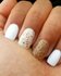 Золотой глиттер станет хорошим вариантом для создания праздничного маникюра и лучше всего будет смотреться на контрасте, например, когда глиттером покрыто 1-2 ногтя, а остальные – черным, бордовым или темно-зеленым лаком. Такой вариант подходит для тех, кто не хочет злоупотреблять обилием золота, но и отказаться от этого варианта не в силах. Однако этот вариант покрытия ыозможен и для всех ногтей а также для покрытия верхней части ногтя, создавая эффект "раздробленного" френча.