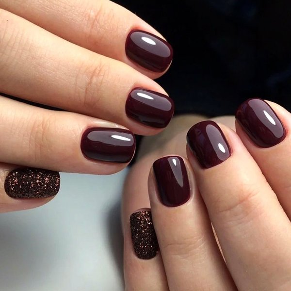 Винный цвет никогда не выходит из моды и остается одним из самых благородных оттенков стильного маникюра.