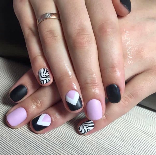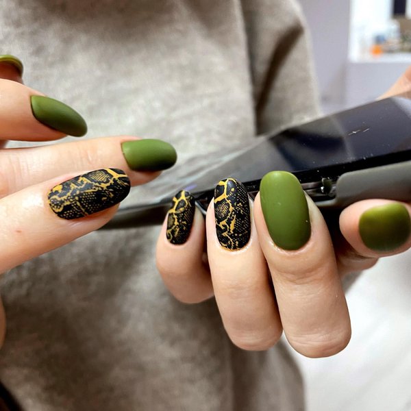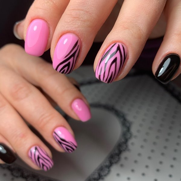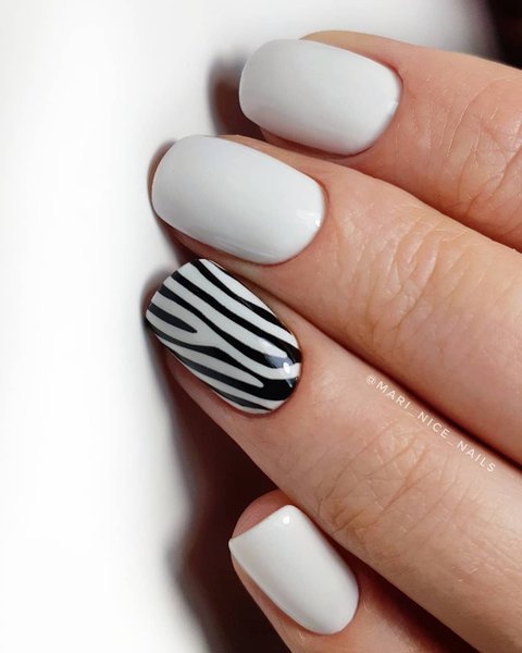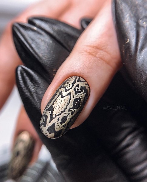Кроме остромодных тигрового и леопардового маникюра, не менее популярными остаются маникюр "под зебру", "змеиный" принт, жирафовый, а также всевозможные комбинации. Как и в первых двух случаях, главным при создании такого маникюра является правильный выбор базы и соответствующие цвета. А вот что касается техник, то тут фантазия не имеет ограничений. Это может быть как акцентный маникюр, так и полное покрытие в "животном" стиле, комбинирование разных фактур лака и использование контрастных цветов, фольги, стразов, глиттера и многое другое.