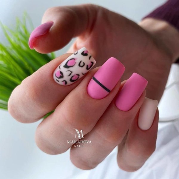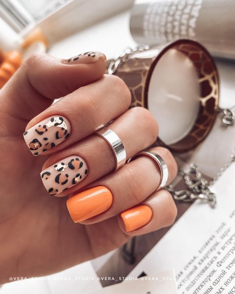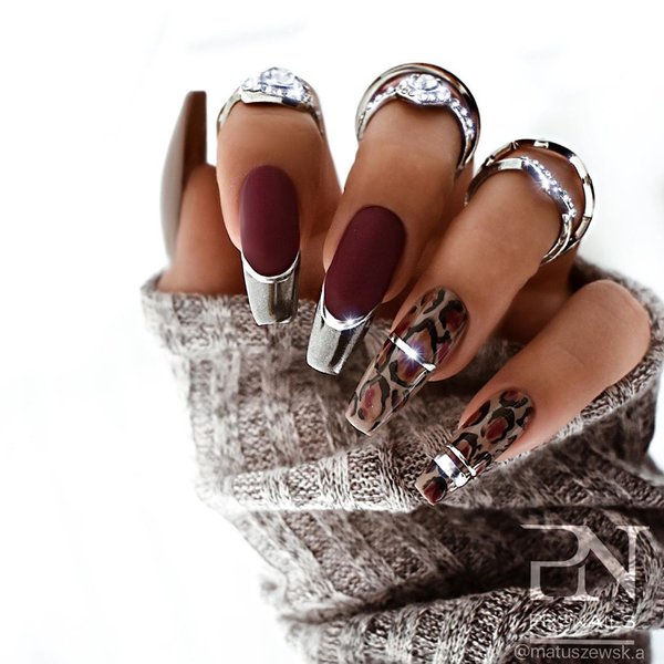 В этом сезоне основным остается акцентный дизайн, в котором один-два ногтя выделены анималистическим рисунком, а остальные покрыты однотонным лаком. Наиболее популярен дизайн леопардового маникюра с комбинированными полосами и животным рисунком матовой фактуры.