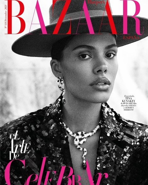 24-летняя французская модель Тина Кунаки, жена актера Венсана Касселя, снялась для испанской версии журнала Harper’s Bazaar, и ее фото появятся на страницах декабрьского выпуска. На двух вариантах обложки издания она предстала в широкополой шляпе, а также в шляпке с деталями, похожими на огромные уши кролика.