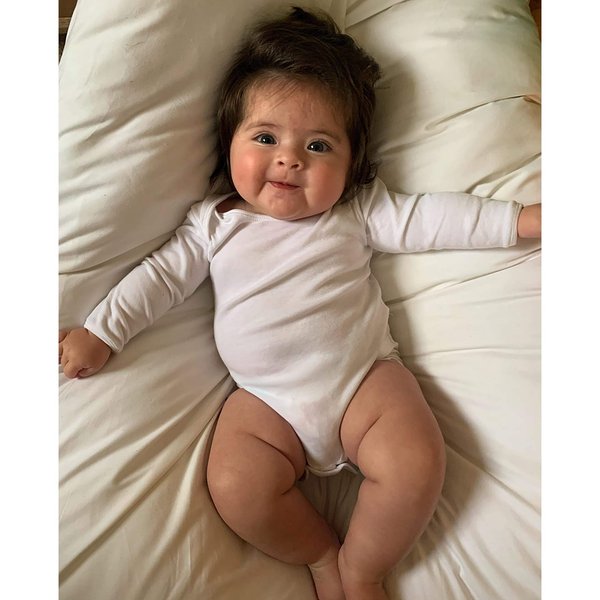 "Всего через два дня после ее рождения мне пришлось уложить ей волосы в хвост, потому что они мешали ей. Мы никогда не стригли ее волосы. Алане нравится, когда ей моют голову и расчесывают волосы, поэтому мы просто оставим их пока и позволим ей самой решить, хочет ли она их подстричь".