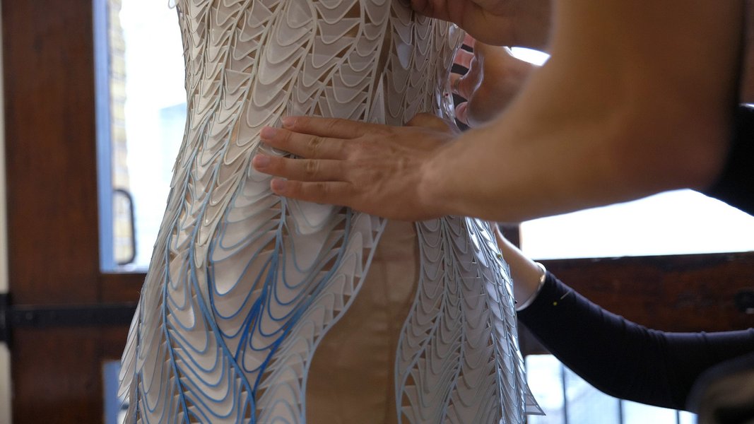 Как уже упоминалось, 72% платья – это пластик, остальные 28% – шелк телесного цвета. Ван Херпен и Шарапова начали обсуждать образ в январе и поддерживали связь по электронной почте, телефону и Zoom.
