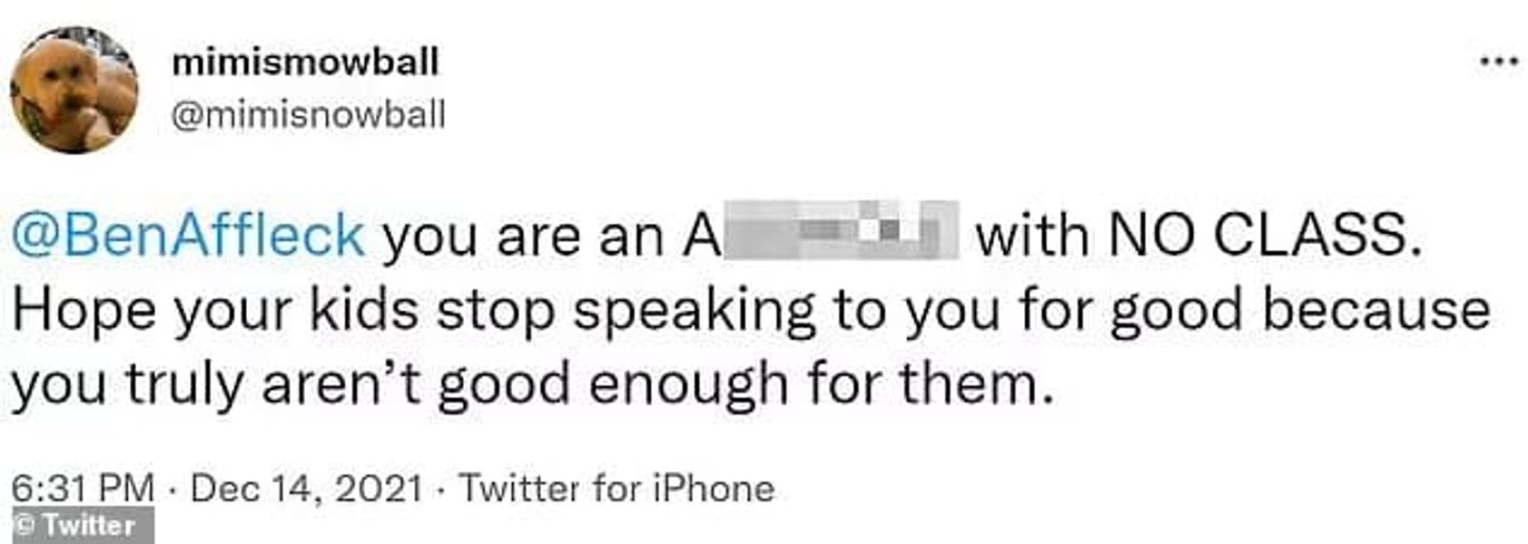 Один пользователь Twitter зашел так далеко, что назвал актера "задницей без класса" и выразил надежду, что трое его детей перестанут разговаривать с ним навсегда, потому что он действительно недостаточно хорош для них.