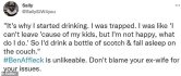 "Я начал пить отчасти потому, что оказался в ловушке. Я подумал: "Я не могу уйти из-за своих детей, но я не счастлив, что мне делать?" Я выпил бутылку виски и заснул на кушетке, что оказалось не решением", – откровенничал актер.