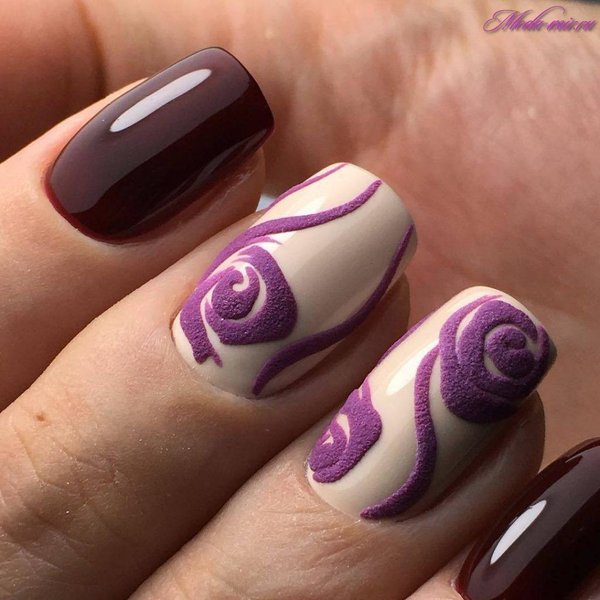 Бархат всегда символизировал роскошь и богатство, а в нарядах из этого материала щеголяли даже монархи. Приятная на ощупь ткань выглядит богато и в целом выглядит очень привлекательно. Поэтому неудивительно, что рано или поздно такая фактура появилась бы и в маникюре. Бархатным его называют из-за того, что в результате нанесения на ногти специального материала ногти выглядят, словно покрытые бархатом.