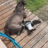 15 месяцев назад Пегги родила пятерых щенков, и хозяева, раздав четверых, оставили одного, назвав ее Руби. Она с удовольствием присоединился к дуэту. Теперь у Молли – два компаньона по играм, причем Руби в силу своего возраста куда более озорная и "доставучая", чем ее мать. Однако сороку это ничуть не смущает.