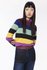 Второй свитер – в тонкую полоску контрастных цветов – желтого, черного и красного. Они соответствуют цветам грядущего года Тигра и сулят своей владелице удачу. Да и просто такой свитер смотрится стильно в зимнем образе с юбкой, брюками и даже шортами.