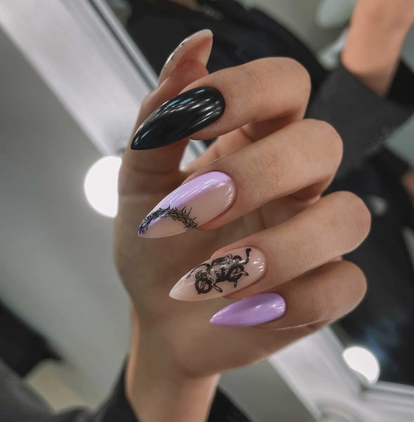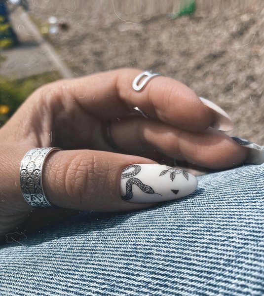 Татуировки особенно эффектно смотрятся на длинных ногтях, придавая им еще боле дерзкий вид. Однако и для обладательниц более скромных ногтей есть немало хороших вариантов.