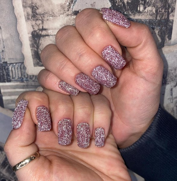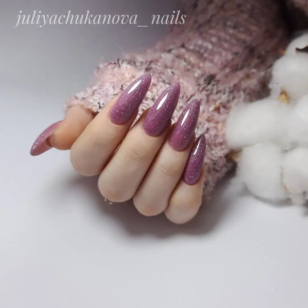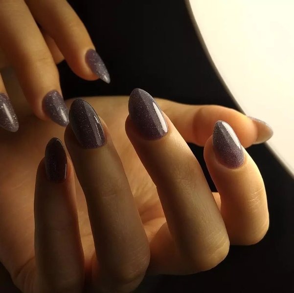 При дневном освещении такое покрытие выглядит простовато, однако когда на ногти попадает свет лампы, картина меняется кардинально.