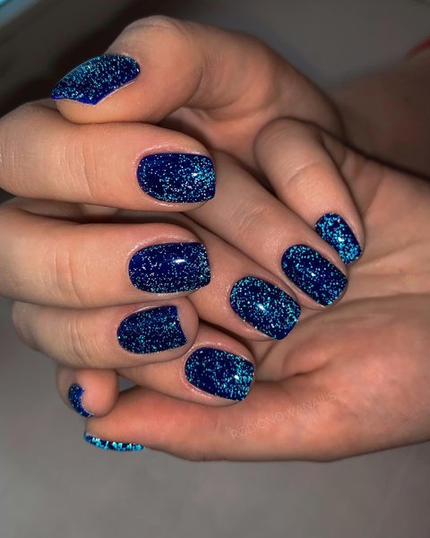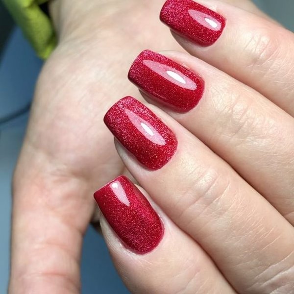 Ногти, полностью покрытые светоотражающим гель-лаком, так же хороши, как при классическом однотонном покрытии. Никаких акцентов, фрагментов и рисунков! Чтобы вечером блеск ногтей не разочаровал, необходимо наносить гель-лак и топ ровным слоем. В противном случае эффект может несколько затеряться.
