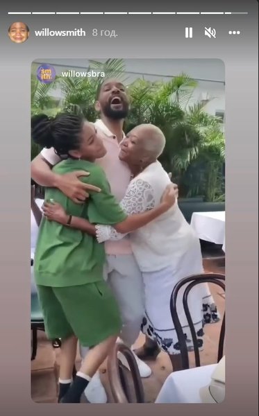 21-летняя дочь Смита, Уиллоу, также поделилась видео с празднования в своей истории в Instagram. Она появилась в кадре в ярко-зеленом топе с соответствующими шортами, обнимая отца и бабушку. Трио танцевало и пело вместе, когда песня подошла к концу.
