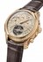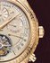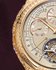 Календарь и астрономические функции играют главную роль на обеих сторонах часов. Спереди, где в положении "6 часов" можно полюбоваться механическим балетом турбийона, на трех счетчиках отображаются показания вечного календаря. Расположенные в верхней части циферблата, они соответственно показывают дату, день и месяц. Это часовое усложнение, разработанное для отслеживания капризов григорианского календаря без какой-либо корректировки до 2100 года, дополнено индикацией цикла високосного года. Последний появляется в небольшом отверстии рядом со стрелкой, указывая крутящий момент механизма минутного репетира между 1 и 2 часами. Этот запас хода ударного механизма соответствует индикации запаса хода механизма, которую можно прочитать с помощью змеевидной стрелки, коаксиальной со стрелкой дня недели.