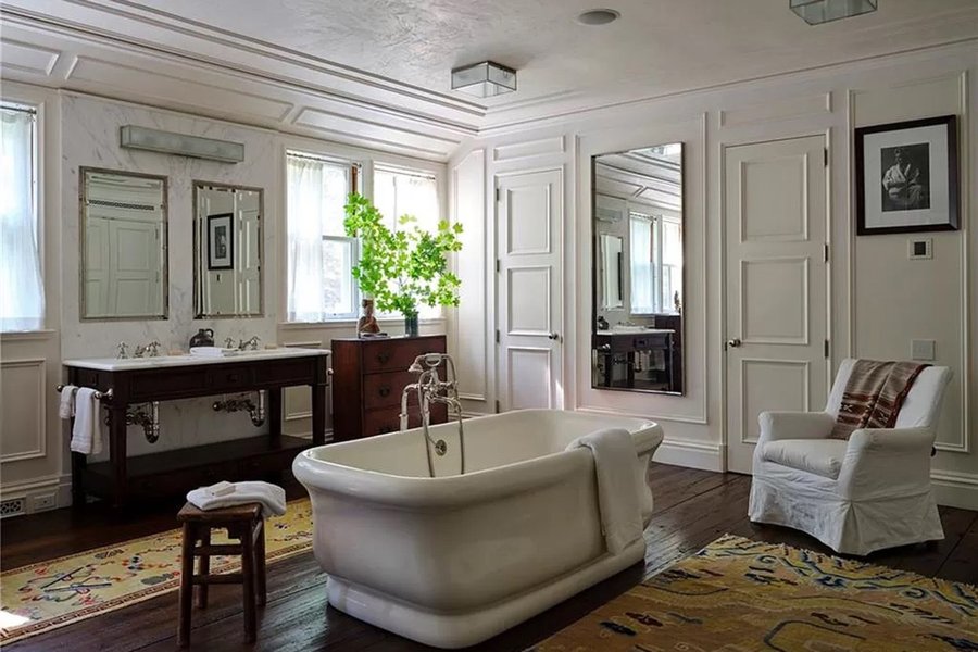 Главная резиденция – трехэтажный дом площадью около 1080 квадратных метров с 19 комнатами, восемью спальнями, 11 ванными комнатами, девятью каминами и несколькими туалетными комнатами.