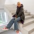 Как уже упоминалось выше, лучше всего с пуховиком смотрятся массивные ботинки на толстой платформе, больше напоминающие мужскую обувь, а также грубые кроссовки. К месту будут высокая шнуровка, металлические детали, кожа или замша.