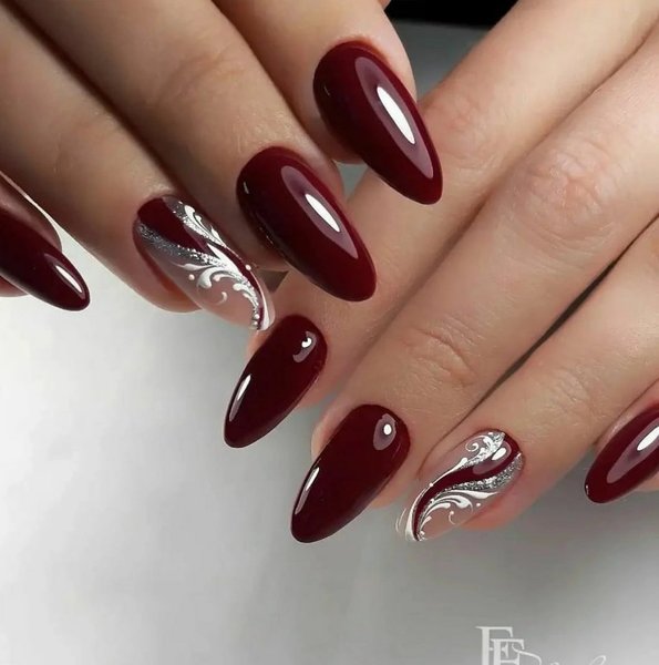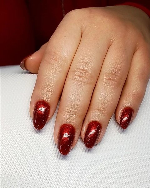 Как уже говорилось выше, красный маникюр самый популярный вариант для романтического ужина. Это может быть как американский вариант, когда совпадают цвет помады и ногтей, так и вариации с акцентным маникюром. Особенно эффектно будет смотреться покрытие "кошачий глаз", придающее ногтям дополнительное сияние, а также глубокие темные тона, начиная от бордового и заканчивая цветом сливы. Декор при таком варианте маникюра нужно наносить осторожно, чтобы не "утяжелить" ногти и не сделать дизайн вульгарным.