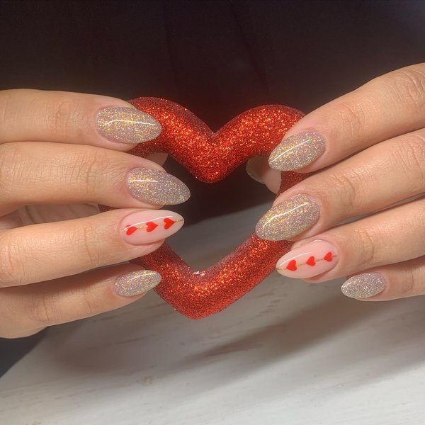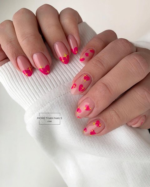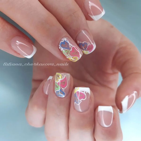 Маникюр с сердечками на 14 февраля