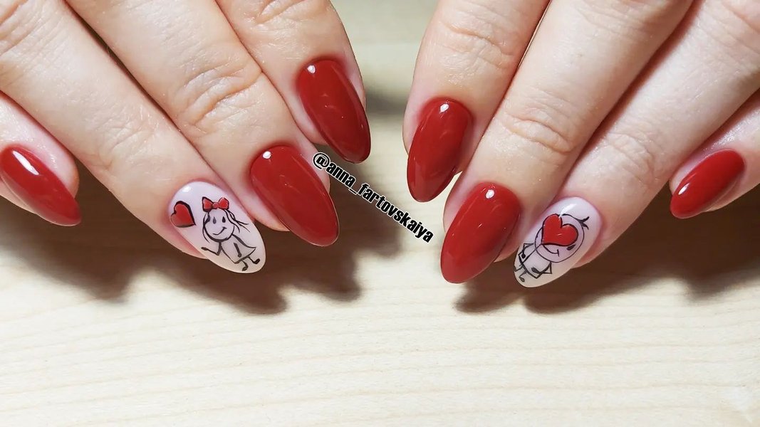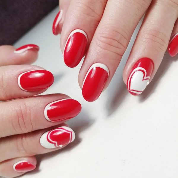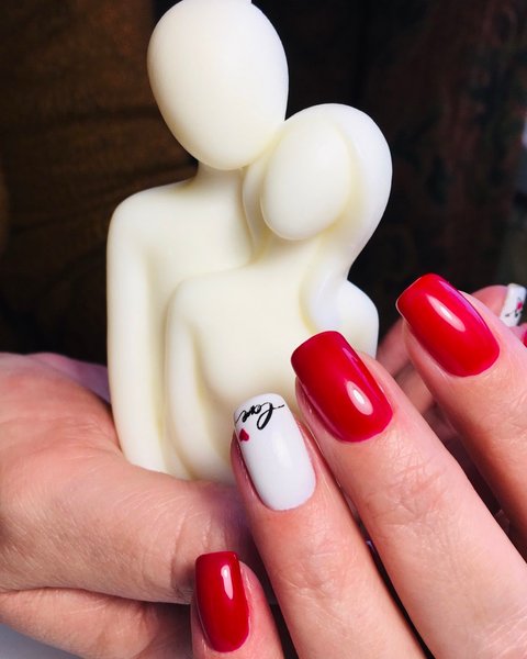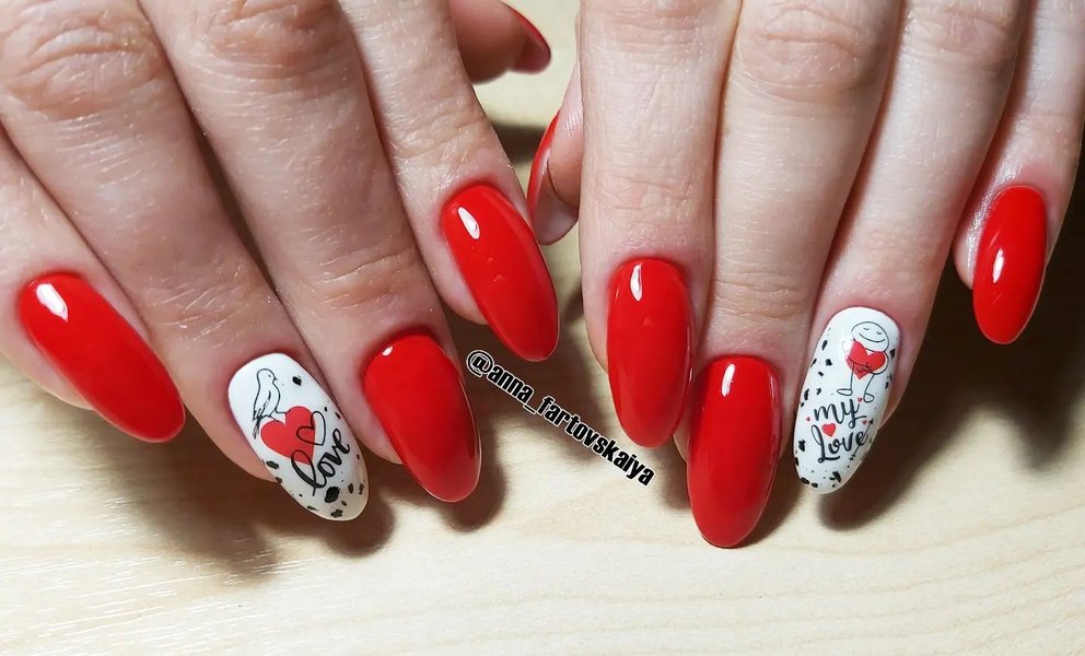 Красный маникюр в день Святого Валентина