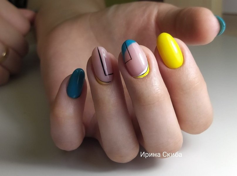Одна из новинок сезона 2022 в ногтевой эстетике – сочетание лунного маникюра с абстрактным искусством. Такой дизайн предполагает использование нескольких цветов с классической базой.