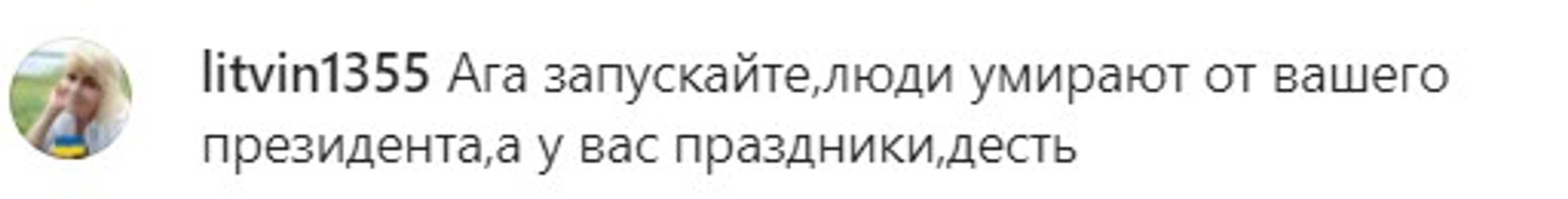 "Было бы похвально, если бы вы так все дружно попытались остановить войну, забрали свои войска с территории Украины, для начала, а потом уже песни пели…", "Хочется надеяться что это ваша идея, а не опять какой то западный аналог, и вправду название можно было русское придумать, даже на этом этапе не напряглись ни разу", "А про войну с Украиной там писать можно будет?", "Ага, запускайте, люди умирают от вашего президента, а у вас праздники, жесть", – пишут под публикацией.