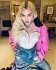 На кадрах певица позирует в откровенном белом корсетном боди с глубоким вырезом и рваных синих джинсах. Образ дополняет ярко-розовый жакет Burberry с контрастным черным воротником и эффектной вышивкой на спине.