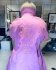 Волосы артистки традиционно завиты в локоны и расчесаны на прямой пробор, а макияж сделан с акцентом на коричневую помаду.