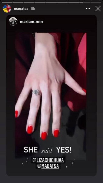 Лиза, в свою очередь, выложила фото руки, на которой уже красуется кольцо с бриллиантом.