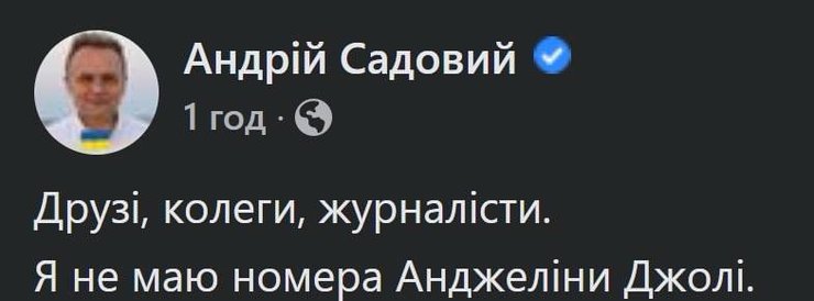 А мэра Львова Андрея Садового, похоже, засыпали вопросами о номере Анджелины Джоли, поэтому он решил ответить, что у него нет номера актрисы.