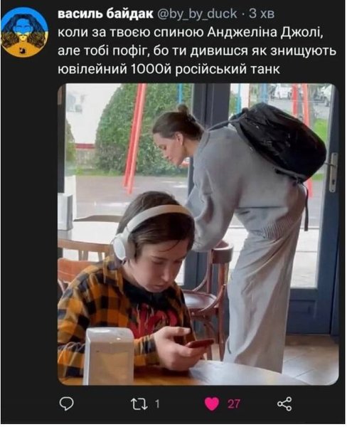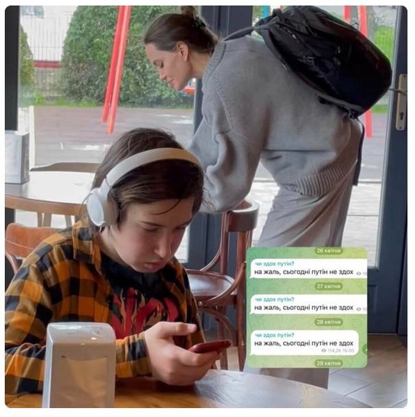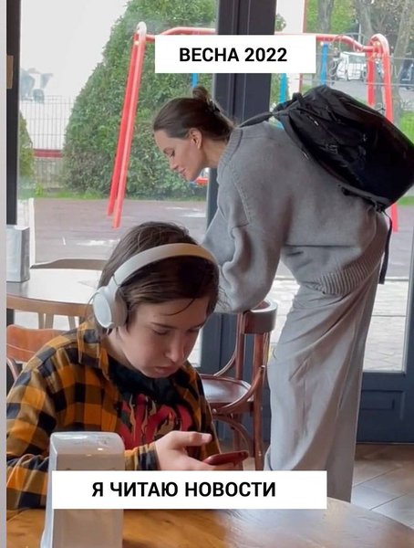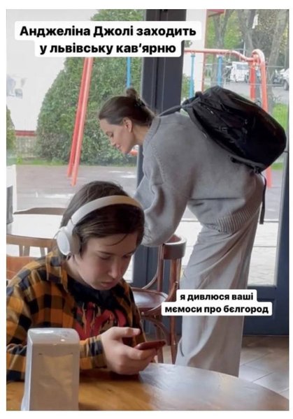 Отдельным мемом стал мальчик во львовском кафе, сидевший в метре от Анджелины Джоли, однако из-за телефона в руках и наушников он даже не заметил мировую знаменитость прямо возле себя.