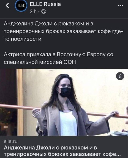 30 апреля 2022 голливудская актриса Анджелина Джоли прибыла во Львов, чтобы вживую пообщаться с украинцами и лично помочь переселенцам. В Сети, кроме благодарности и удивления, стали распространяться мемы о визите звезды мирового масштаба в украинский город.