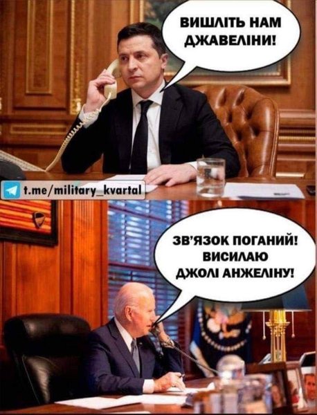 Также некоторые предположили, что Владимир Зеленский попросил у Президента США Джо Байдена еще больше джавелинов, однако тот не услышал украинского Президента из-за плохой мобильной связи и выслал Джоли Анджелину.