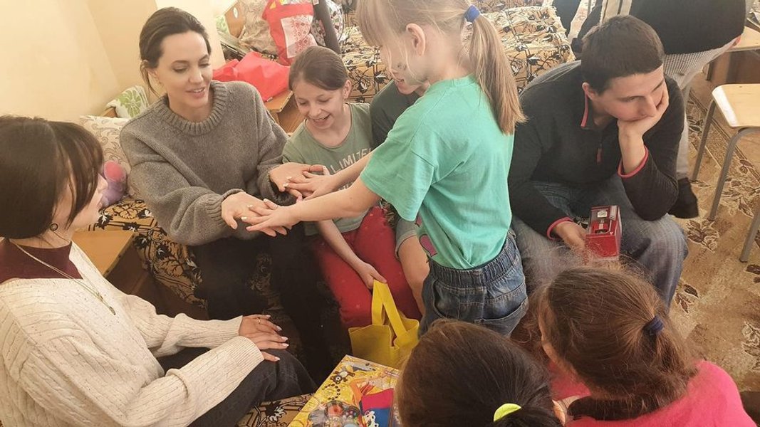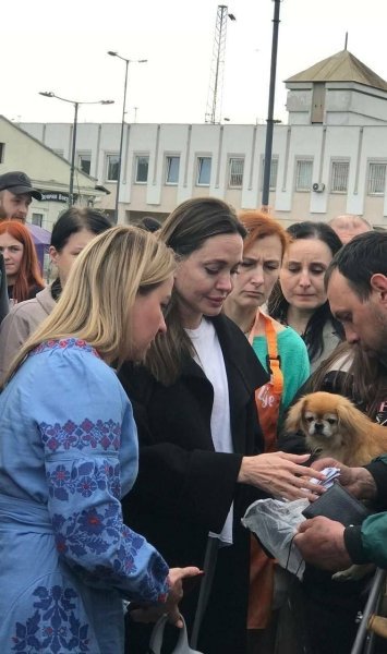 Во время визита во Львов Анджелина Джоли встретилась на железнодорожном вокзале города с беженцами, которые приехали на эвакуационном поезде из Покровска, Донецкой области. При этом актриса не могла сдержать слез, слушая истории людей, которые спасались от войны.