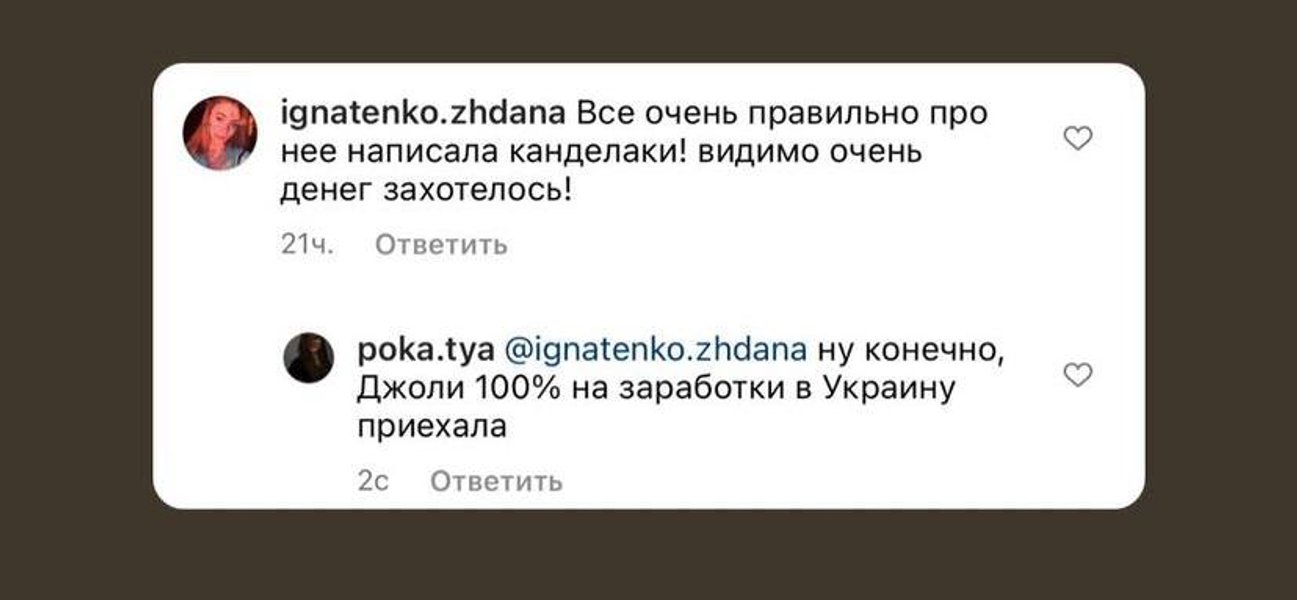Некоторые россияне решили, что Анджелина Джоли, таким образом, решила пропиариться или заработать денег. "Ну, конечно. Джоли 100% на заработки в Украину приехала", — отвечают украинцы.