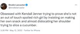 "Около часа назад я стал свидетелем попытки Кендалл Дженнер разрезать огурец на экране моего телевизора. Это заставляло меня чувствовать себя немного выше, но в основном беднотой", "Кендалл Дженнер пытается разрезать огурец, наверное, самое смешное, что я видел за всю неделю, тяжело быть богатым!", "Возможно, это одна из самых простых вещей, которые можно сделать на кухне", "Одержимая Кендалл Дженнер, пытающаяся доказать, что она не отошла от дел, избалованная богатая девушка настаивала на том, чтобы приготовить себе перекус и чуть не вывихнула плечо, пытаясь нарезать огурец", – пишут в комментариях.