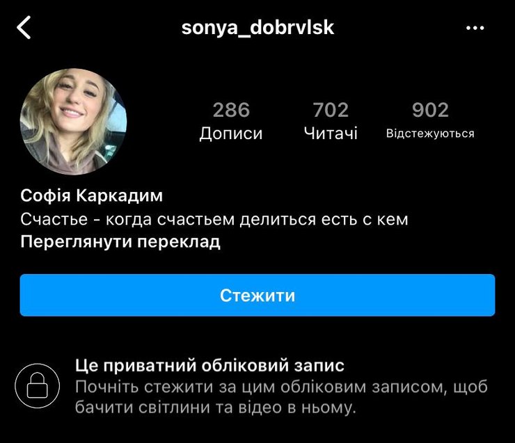 Сейчас украинка закрыла свой профиль в Instagram и написала в описании страницы: "Счастье — когда счастьем делиться есть с кем".