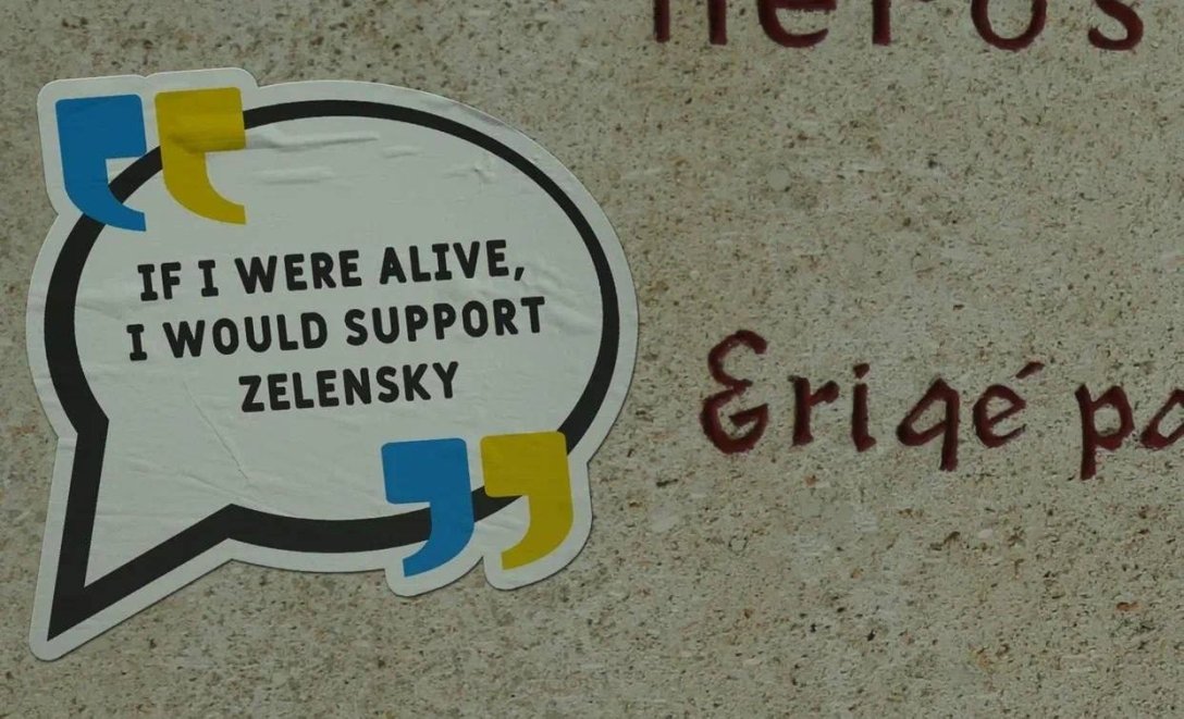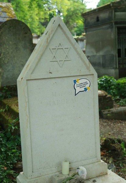 На парижском кладбище Пер-Лашез в Париже появились наклейки в поддержку Зеленского