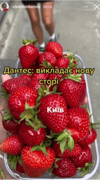 Дантес поделился фото с клубникой в руках с подписью "Киев", однако на заднем фоне видны ноги неизвестной девушки.