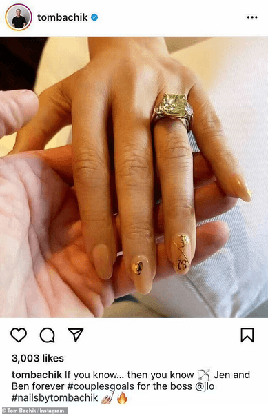 "Если ты знаешь… значит, ты знаешь. Джен и Бен навсегда", – подписал он изображение. Бачик, среди клиенток которого Селена Гомес, Ариана Гранде, Камилла Кабельо, Никола Пельтц и многие другие, добавил "#couplesgoals for the boss", отметив Джей Ло в подписи.