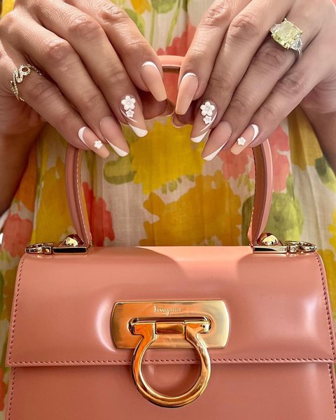 Особое внимание Дженнифер уделила маникюру, который для нее сделал звездный мастер Том Бачик. В Instagram она крупным планом показала свои ногти, демонстрируя оригинальный скошенный френч, украшенный объемными белыми цветами.
