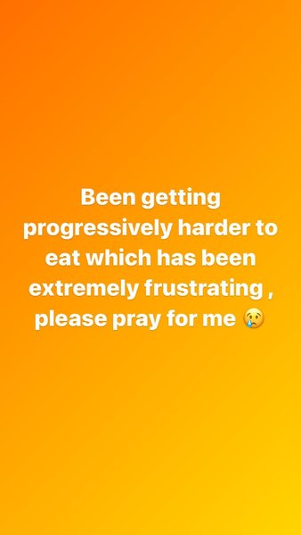 Спустя некоторое время в сторис певец признался, что ему стало еще труднее есть и его это очень огорчает.
